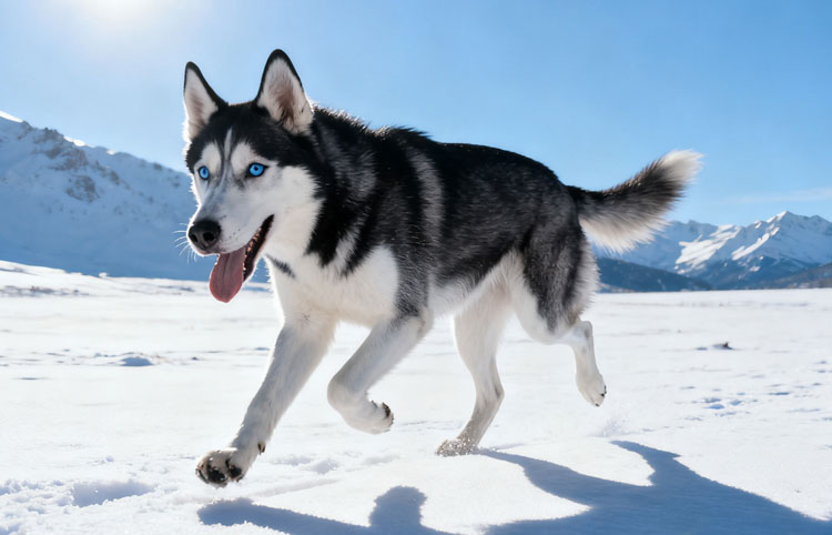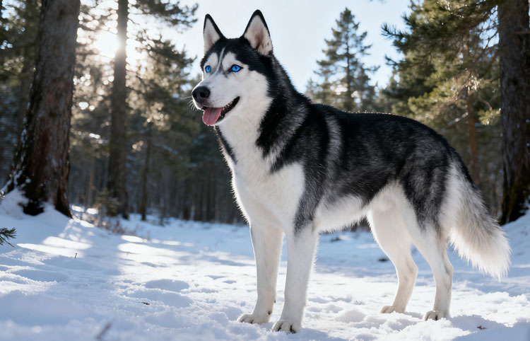 Huskies have highly distinctive blue eyes and pull sleds across the wilderness. Originating from the frigid Siberian climate, the Husky is a medium-sized breed weighing between 22.5 and 30 kilograms, with a shoulder height of 50 to 60 centimeters. Its coat is short, dense, and double-layered. The American Kennel Club (AKC) describes it as: “Friendly, gentle, noble; alert, but not aggressive.”