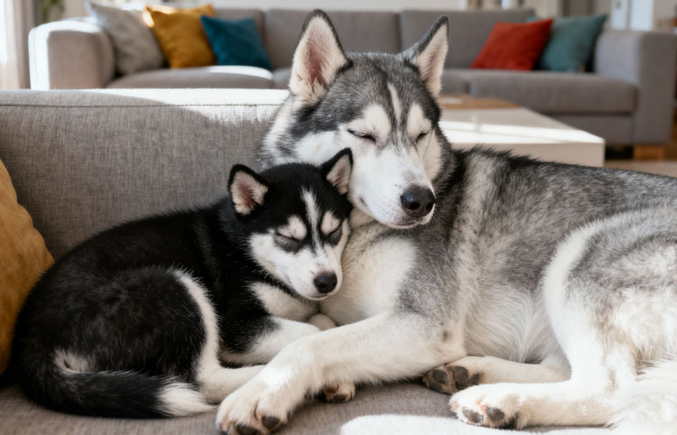 4. Huskies exhibit minimal possessiveness and jealousy toward their owners. They coexist peacefully with other pets, happily sharing playtime together.